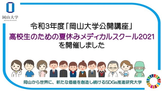 国立大学法人岡山大学(本部:岡山市北区、学長:槇野博史)は2021年8月3日、「高校生のための夏休みメディカルスクール2021」をオンラインで開催しました。