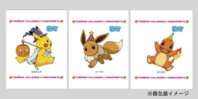 2016年のハロウィン企画で発売して以来、ご好評をいただいているポケモンの「星たべよ」が今年も登場致します。紫色を背景にピカチュウとポッチャマがひと際目を引くデザインに仕上げました。パッケージ裏面には、作って楽しい、ポケモンデザインのフォトプロップスのデザインが記載されております。写真撮影が楽しくなること間違いなし!また、昨年ご好評いただいたカラフル個包装が、今年は新たなポケモンが加わって登場致します。デザインは全部で“12種類”!配って楽しい大袋タイプの星たべよ(しお味)です。