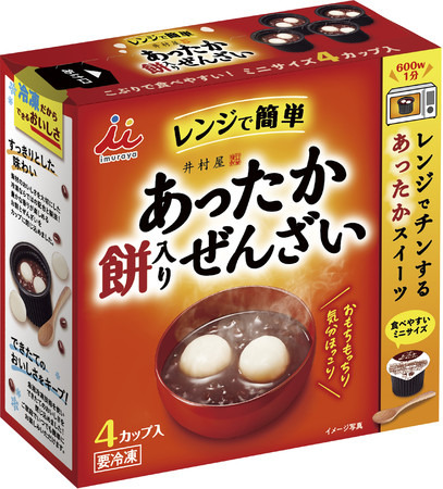 井村屋株式会社(本社:三重県津市高茶屋七丁目1番1号、社長:岩本 康)は、冷凍和菓子シリーズからカップのままレンジで簡単調理できる、井村屋初の冷凍ぜんざい『4コ入 あったか餅入りぜんざい』 を2021年8月30日(月)より全国にて発売します。