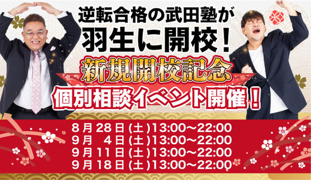武田塾羽生校の開校を記念して、羽生校では個別相談イベントを実施いたします。