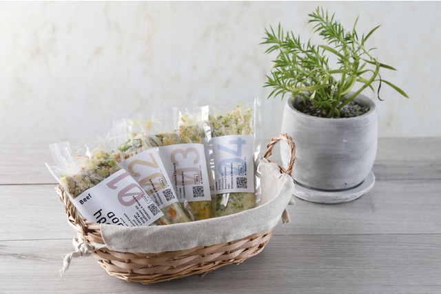 Buddy FOODは厳選した原料を使用した愛犬用のご飯を、調理直後に新鮮なまま冷凍し、ご自宅までお届けするフレッシュフードです。一般的なドッグフードに比べ栄養吸収率が高く、また、水分量が多いため効率よく水分補給ができ、おしっこの量が増えることで尿結石の予防も期待できます。さらに、その新鮮さから、素材の味や香りが強く、食いつきがいいのが特徴です。