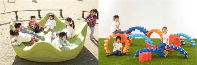 モップスは7種20パーツで構成された大きなブロックで、自由に動かし組み合わせて、長い橋を作ったり、秘密基地を作ったり、船をつくったりと、子どもたちの発想で遊びが展開していく、新しい遊びの価値の遊具です。全てを重ね合わせることで小さく納まるので片付けも楽しく、また省スペースに保管しやすい製品です。屋外でも使用可能です。