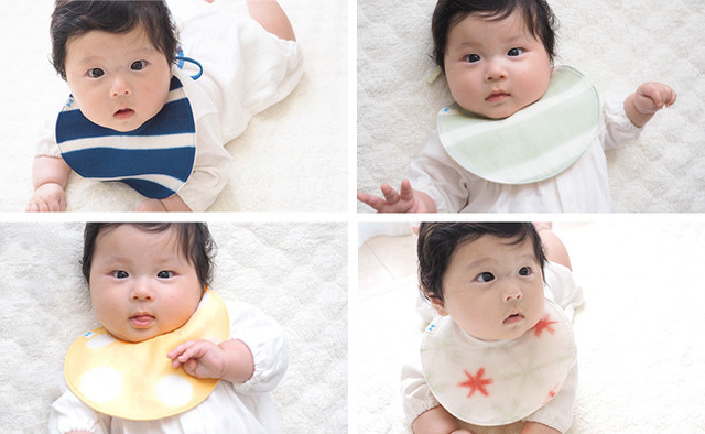 ドットやストライプなどのモダンなデザインを、伝統的な有松絞りの技法で再現。職人がひとつひとつ手作りした幼児向けスタイ(よだれかけ)です。素材には赤ちゃんの敏感肌にもやさしい「綿」を使用。普段使いはもちろん、ハレの日の衣装や贈答品としてもご好評いただいています。