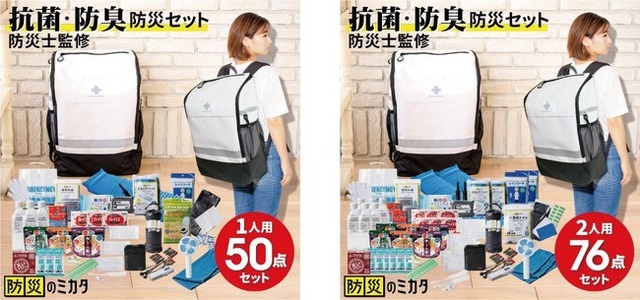 『抗菌・防臭 防災セット』は、防災士や災害備蓄管理士の資格を持つクルーズカンパニーのスタッフが厳選した防災アイテムセットです。今回リリースするのは1人用(39,600円)と2人用(49,600円)の2タイプ(※)。ここでは収納されているアイテムから特に避難所生活で役立つものを3点ご紹介いたします。