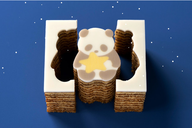 しっとり柔らかい平焼きのバウムクーヘンに特殊なカット加工を施し、パカッと開くとかわいらしいパンダの型抜きがお楽しみいただけます。