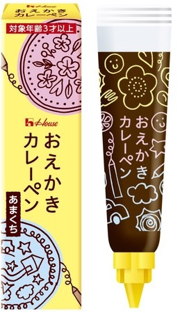 チューブ入りのカレーソースで、お皿や、ごはんに絵が描けるペン先がセットになっています。おえかきの後は、マイルドな甘口のカレー味でごはんがすすみます。