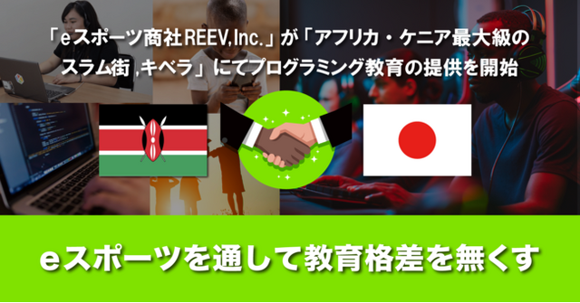 ゲーミング英会話の運営を始め、eスポーツを通して社会問題の解決を目指すeスポーツ商社「REEV株式会社」(本社:東京都中央区、 代表取締役:渡部裕介)は、セブ島IT×英語学校「Kredo」(本社:フィリピンセブ島、 代表取締役:横田猛夫)と業務提携を締結し、2021年8月28日(土)よりアフリカ・ケニア最大級のスラム街「キベラ」にてプログラミング教育の提供を開始しました。