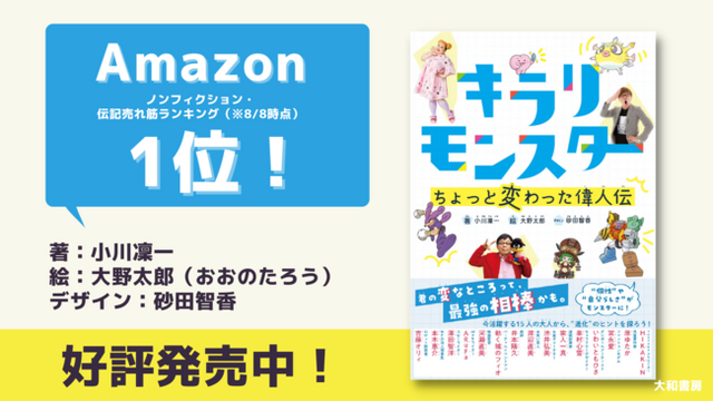 従来の偉人伝とは異なり、HIKAKINさんや渡辺直美さんら現在活躍する偉人が登場。本が苦手な子どもでも楽しめるように、偉人の特徴をモンスター化し、生い立ちから個性が磨き上げられる様をモンスターの進化の過程として描いた日本一変わった偉人伝となっている。