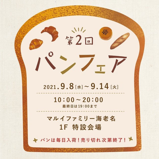 マルイファミリー海老名(株式会社丸井、本社:東京都中野区、代表取締役社長:青野 真博)1F特設会場にて、「第2回 パンフェア」を9月8日(水)~9月14日(火)の期間限定で開催いたします。