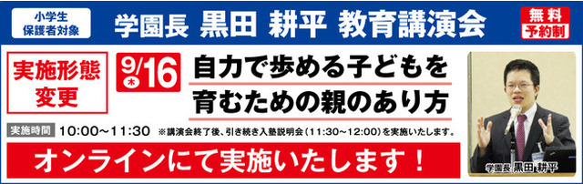 株式会社 希(のぞみ)学園(関西本社:大阪市北区 理事長 前田卓郎・学園長 黒田耕平/以下「希学園」)は、特別企画といたしまして、学園長 黒田耕平 教育講演会をオンラインにて実施いたします。