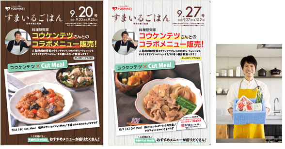 つくる人から笑顔に。をテーマに全国で“食材(ミールキット)宅配サービス”を提供するヨシケイグループ(本部:ヨシケイ開発株式会社/静岡市代表:井野口雄一)は、1975年の創業以来、毎日、自社便による食材宅配を続け、今年の11月で46年目を迎えます。秋のミールキット祭りを記念し、YouTubeのチャンネル登録者数が100万人を超える、大注目の料理研究家・コウケンテツさんとのコラボレーションが実現しました。ヨシケイの栄養士とタッグを組んで開発したメニューの販売や愛用グッズのプレゼントなどコラボ企画が目白押しです。