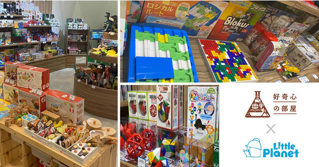 今回のリニューアルにより、“遊びが学びに変わる”というリトルプラネットのコンセプトに合わせて「好奇心の部屋」がセレクトした知育系パズルやフィギュア、“育脳”玩具などの人気商品約300点がグッズショップに登場しました。リトルプラネットのパークで思いっきり遊んだあとはグッズショップへお立ち寄りいただき、子どもたちの好奇心を刺激する多彩な“学び”のアイテムと出会うことができます。