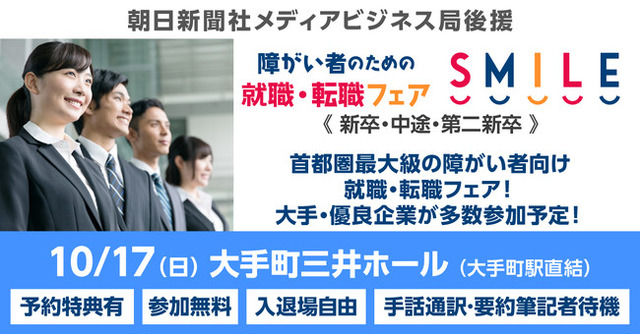 首都圏最大級の障がい者向け就職・転職フェア「SMILE」が10/17(日)東京・大手町にて開催!