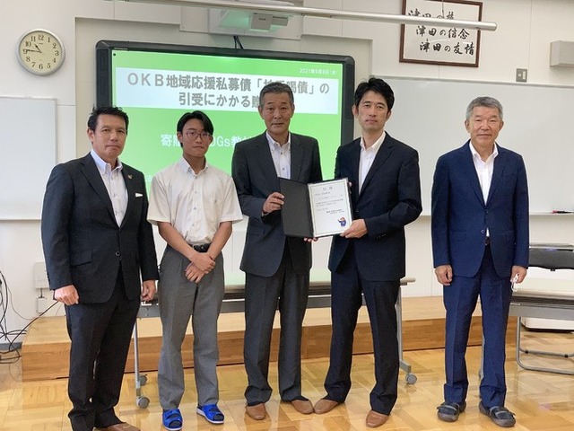 私募債は、企業が発行する社債(企業が発行する債券)の一種です。iinaを津田学園中学校・高等学校に提供する際に用いられた私募債は、大垣共立銀行の「OKB地域応援私募債 拍手喝債(SDGs賛同型)」です。