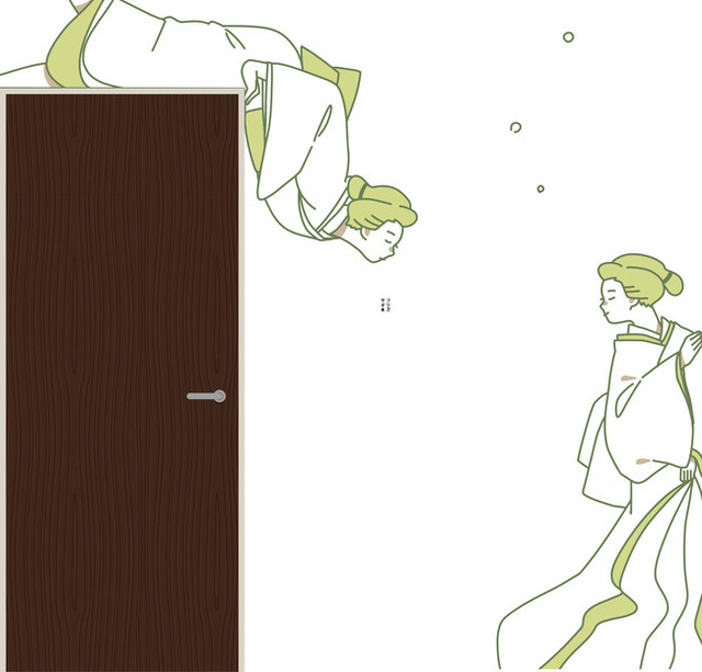 コンセプト:フジヱラボでオーダーしたドリンクを「ひとくちちょうだい」とおねだりする江戸時代の女性の声が聞こえてきそうな作品。写真を撮る人がフジヱラボで購入したドリンクを作品の女性の口元に近づけると、ひとくち飲ませて上げているように見える、“映え”も意識した作品になっています。