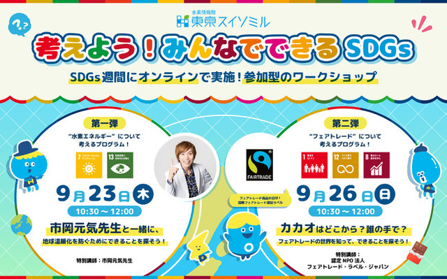 今回は、「水素」と「フェアトレード」を題材にSDGsについて、考えるプログラムです。9月23日(木) 、26日(日)10:30~12:00(90分間)で開催します。どなたでもオンラインで参加が可能です。公式ホームページからお気軽にお申し込みください。(公式サイト:https://www.tokyo-suisomiru.jp/)