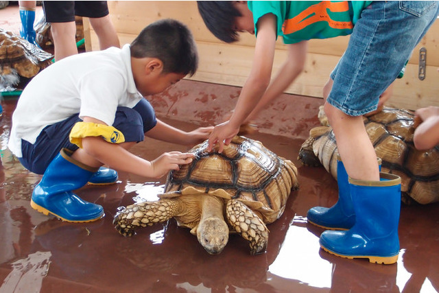 本イベントは飼育員による詳しい解説に加え、皆様には飼育員となってリクガメの甲羅やおうちの掃除、餌やり、体重測定を体験していただきます。