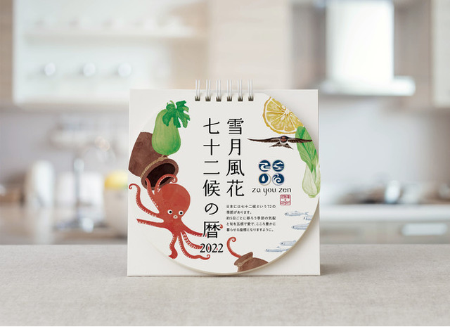 「雪月風花 七十二候の暦」は、季節の行事や旬のものを通じて豊かな暮らしを提供する「暦生活」と、四季の塩と共に旬を愉しむ暮らしをお届けする「za you zen」が共同制作したオリジナルカレンダーで、今年で2年目の発売です。