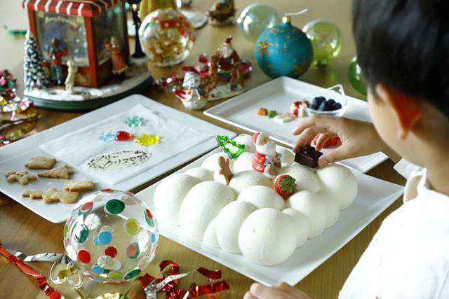 当ホテルでは、昨年開業以来はじめてテイクアウトのクリスマスケーキを販売。昨年に引き続きご用意した“プレザント”は、お子様と一緒に三世代、 5名~8名様でシェアできる7号サイズ。付属の飴細工やフルーツ、クッキー、チョコレートなどをみんなで飾り付ければ、世界にひとつだけのクリスマスケーキの出来上がりです。1年に一度の特別な日、記憶に残る楽しいひとときを演出します。