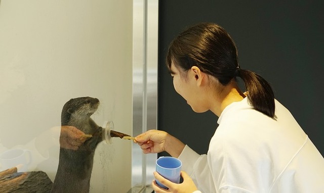 「HANA・BIYORI」には4頭のコツメカワウソが暮らしています。昨年3月のオープン以降、その可愛らしい姿やしぐさは来園者に大人気です。えさやり体験会の参加者は、コツメカワウソたちがその器用な手を使って一生懸命えさをつかみ、夢中で食べる姿を間近でご覧いただけます。