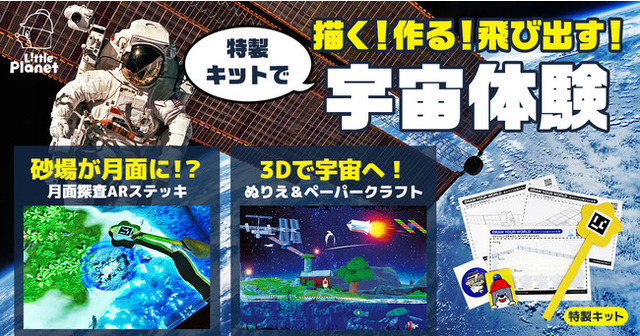 専用のペーパークラフトなどがセットになった特製キットを店頭または公式サイトでご購入いただくと、「宇宙」をテーマにした特別なアトラクション体験をお楽しみいただけます(別途リトルプラネットの入場料が必要です)。