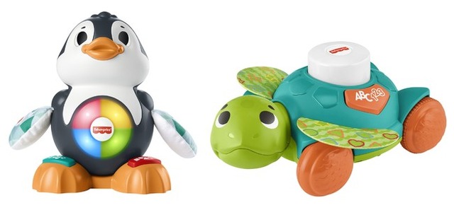 現在発売中の「リンキマルズ ウミガメ」は、「ABC」ボタンを押すと、アルファベットや数字をおしゃべりや35以上の歌で教えてくれます。またこうらのボタンを押すとウミガメが前に進むため、はいはいでおいかけっこして遊ぶこともでき、お子さまのはいはい応援にぴったりの商品です。