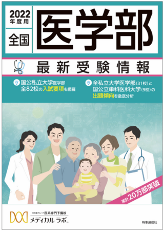 医系専門予備校として合格実績No.1(「ショッパーズアイ」調べ/2021年度入試 医学部医学科合格者1,289名)、全国に27校を展開する医系専門予備校メディカルラボでは、全国医学部の最新受験情報を網羅した『2022年度用 全国医学部最新受験情報』を時事通信社から発刊いたします。累計発行部数20万部と、まさに医学部受験生のバイブルとなっており、各大学の過去の入試データや2022年度入試要項、出題傾向と分析はもちろん、2022年度医学部受験日カレンダー、入試変更点や各種ランキング、面接試験の内容など、医学部受験に必要な情報を網羅しています。全国の大型書店にて2,750円(税込)でお買い求めいただけます。また、発刊を記念して多くの医学部志望者にご好評いただいているイベント「 医学部入試合格ガイダンス 」を全国の会場で開催しております。医学部合格を目指す受験生、ご家族必聴の講演会です。