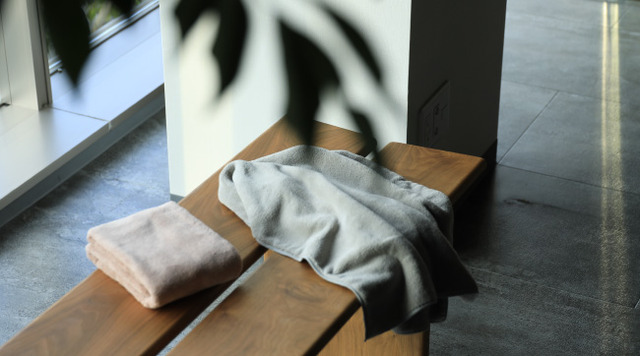 濡れた肌の上に当てるだけで驚くほど水を吸収してくれるので肌を擦る必要がありません。