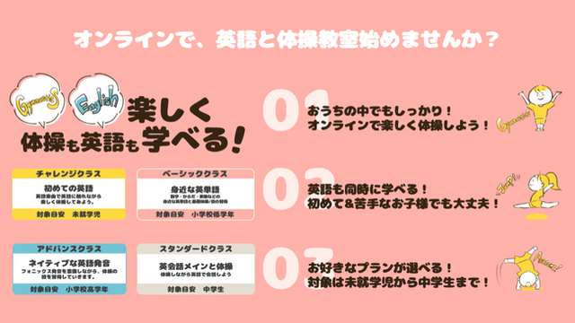 こども向けの英語×体操のオンラインでの習い事です。(未就学児~中学生まで)