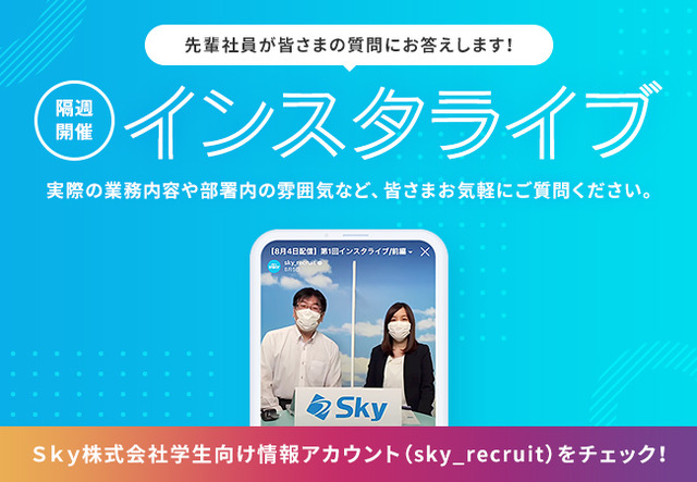 Sky株式会社 学生向け情報 公式Instagram:sky_recruit(https://www.instagram.com/sky_recruit/)
