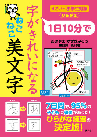 株式会社講談社は、『決定版1日10分でえがじょうずにかけるほん』『1日10分でせかいちずおぼえる絵本』など、累計170万部を超える大人気シリーズから、美しい字が書けるようになる練習ドリル 『1日10分で 字がきれいになる ねこねこ美文字』を刊行しました。