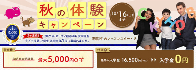 シェーン英会話では、9月24日(金)から10月16日(土)まで、お得な秋の体験キャンペーンを実施中です。