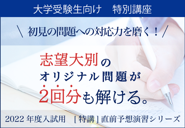 ※「直前予想演習シリーズ」(添削指導付き)の最終申込み締切日は、2022年1月22日(土)です。