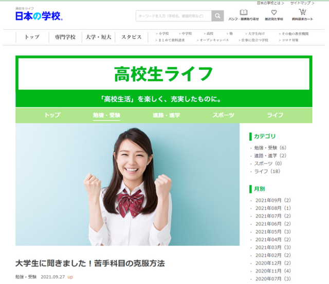 高校生ライフ「大学生に聞きました!苦手科目の克服方法」:https://school.js88.com/koukousei/life/28