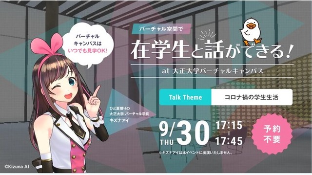 7月31日(土)に「VR cluster」内にて「大正大学バーチャルキャンパス(8号館)」を開設。在学生、教職員、学外から特別ゲストを招き、大学の「学び」やキャンパスライフ、将来の進路など、さまざまな質問にリアルタイムで応えることが可能な双方向コミュニケーションをVR空間内にて実現しました。スマートフォンやタブレット、パソコンがあればバーチャルキャンパスを探索したり、他の来場者と会話を楽しんだりと、誰でも自由に参加可能です。https://cluster.mu/w/e7673697-5f68-4507-b917-806eef599a1f