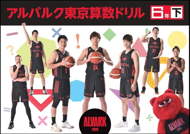 このドリルは、スポーツの魅力を感じながら子供たちが楽しく算数を学ぶことができるように、バスケットボールやアルバルク東京の選手・チアリーダー・マスコット等に関連した問題で構成されており、2020年度より東京都内の小学校6年生に配布しております。