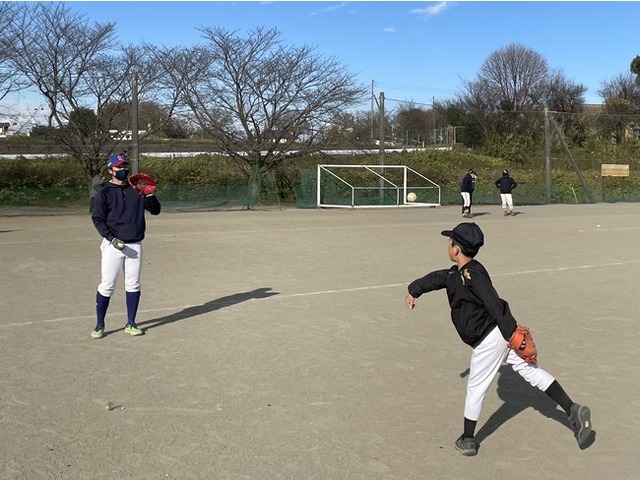 ・選手とのキャッチボールを通じた投げ方のレッスン