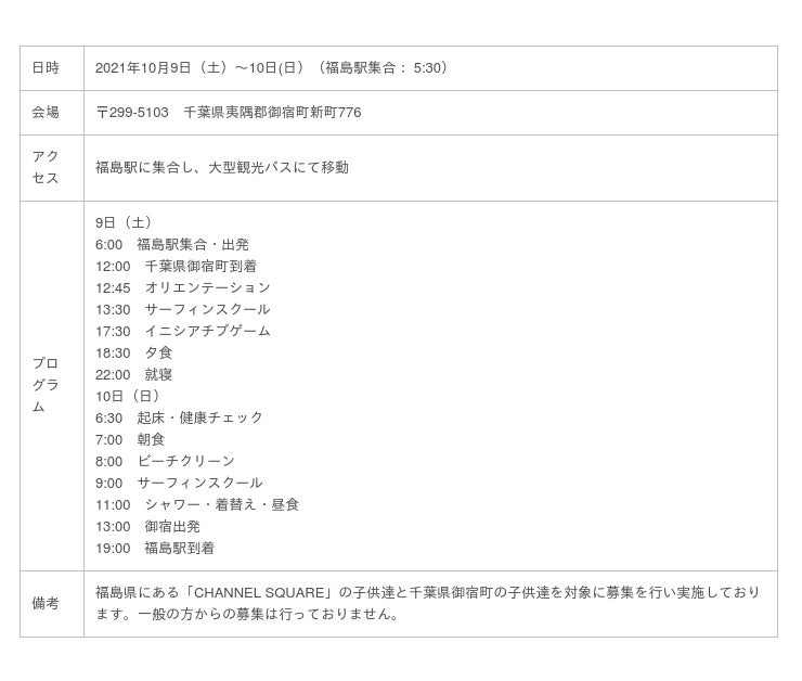 東北出身のプロボディーボーダーの友人に相談し、「千葉県の綺麗な海へ、福島の海に入れなくなってしまった子供達を連れ出して欲しい」と思いを聞くことができました。そこから「陽(あ)けたら海へ~FOR TOHOKU~」とし、ボディーボードだけでなく、サーフィン、SUPが加わり、「想い」に共感くださる各プロフェッショナルの先生方、そして笑顔をプレゼントしてくれる有志と共に、東北の子供達や親御さんへ「笑顔の輪が広がりますように」という願いのもと2012年から第2章が始まり今に至ります。