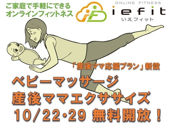 今回無料にて開放するレッスンは、赤ちゃんと家族がスキンシップを通してコミュニケーションをとることが出来る「ベビーマッサージ」と、肩こり解消や骨盤矯正のストレッチを中心に、育児に必要な体力や筋力の強化を目指す「産後ママエクササイズ」の2種類のレッスンで、産後のママにとても好評をいただいているレッスンです。インストラクターと会話をしながら進行されるレッスンですので、ママ一人でもご自宅から安心してご参加いただけます(もちろん途中で一時レッスンから離れても問題ありません)。無料で体験ができるこの機会に、是非こちらのライブレッスンをお試しください!
