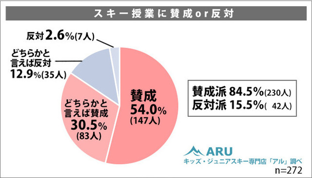 ・スキー授業は賛成派が84.5%(230人)、反対派は15.5%(42人)