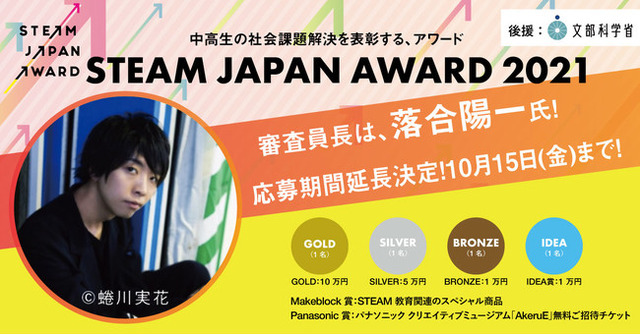 STEAM JAPAN AWARD 実行委員会 (事務局:株式会社 Barbara Pool )は、中高生を対象とした、STEAM 人材*を表彰する日本初の取り組みとして、今年も STEAM JAPAN AWARD(後援:文部科学省/審査委員長:メディアアーティスト・落合陽一氏) を開催中です。*「自ら課題を設定し、新たな変化を生み出す人材=STEAM 人材」URL: https://steam-japan.com/award
