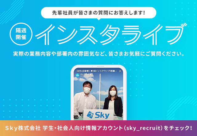 Sky株式会社 学生・社会人向け情報 公式Instagram:sky_recruit(https://www.instagram.com/sky_recruit/)