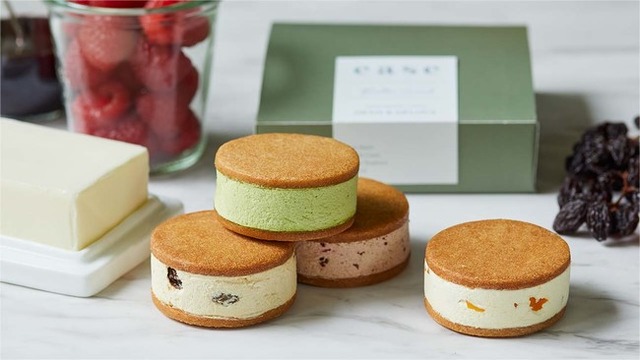 儚く繊細なレストランデザートをつくり続けてきたイーズ 大山恵介シェフ。さまざまな食材や調味料に囲まれる環境の中で培ったのは、素材本来の多様な味わいを引き立て、補い合うように組み合わせるテクニック。肩肘張らない自由な発想で、素材のフレッシュさ、ジューシーなおいしさを大切に、繊細な風味や食感の組み合わせにこだわった、DEAN & DELUCAのための特別なバターサンドが月ごとに登場します。