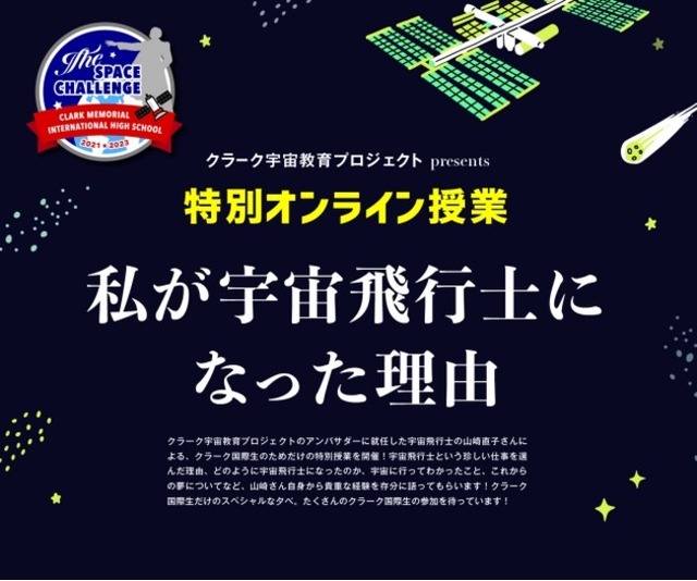 クラーク記念国際高等学校(本校:北海道深川市、校長:三浦 雄一郎)で10月5日(水)、特別オンライン授業が実施されました。この授業は、クラーク宇宙教育プロジェクトの一環として企画され、宇宙飛行士の山崎直子さんによる講演「私が宇宙飛行士になった理由」が行われました。