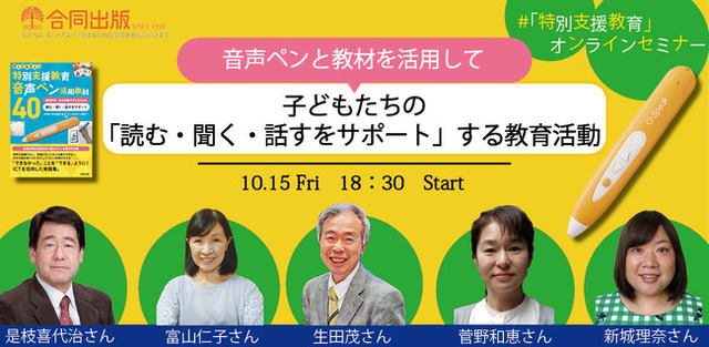 合同出版では2021年10月15日に#「特別支援教育」オンラインセミナー 音声ペンと教材を活用して子どもたちの「読む・聞く・話すをサポート」する教育活動 のオンラインイベントを開催いたします。