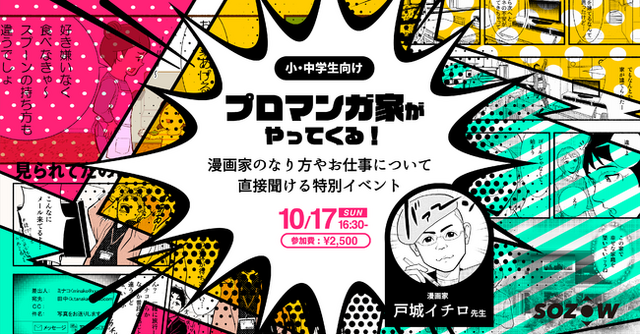 Go Visions株式会社(所在地:東京都品川区、代表取締役:小助川 将)が運営する小・中学生向けオンラインの学び場「SOZOW(ソーゾウ)」は、2021年10月17日(日)に、プロの漫画家である戸城イチロ先生をゲストにお迎えして、子どもたちが直接質問できるワークショップを開催します。