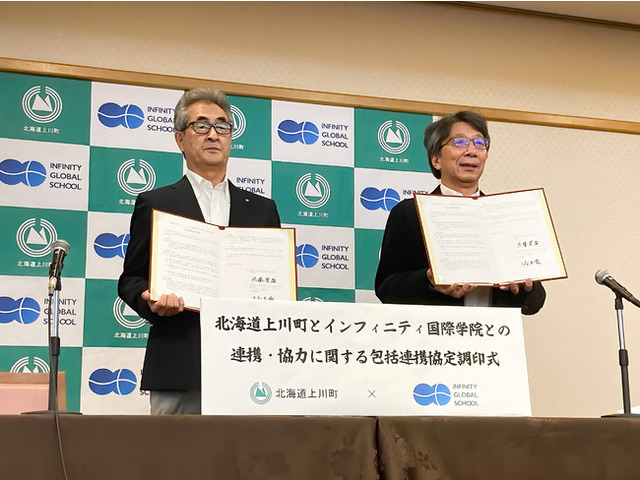 インフィニティ国際学院(以下「インフィニティ国際学院」、(株)インフィニティグローバルスクール運営)と北海道上川町(以下「上川町」)は、インフィニティ国際学院の「10年後の世界を変えるリーダー」の育成と、上川町の「自然と調和した未来」の実現を目指すため、インフィニティ国際学院の拠点を上川町に設置し、活動及び情報発信等を地域活性化に繋げていくことを目的とした包括連携協定を2021年10月18日(月)に締結いたしました。