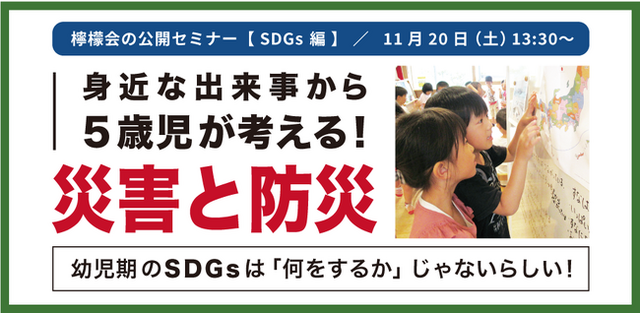 そこで社会福祉法人 檸檬会では、定期的にSDGsに関するセミナーを開催し、法人が運営する保育施設での実践事例を通して、乳幼児期に関わる大人が「SDGsと保育・子育てのつながり」について考える場を提供します。