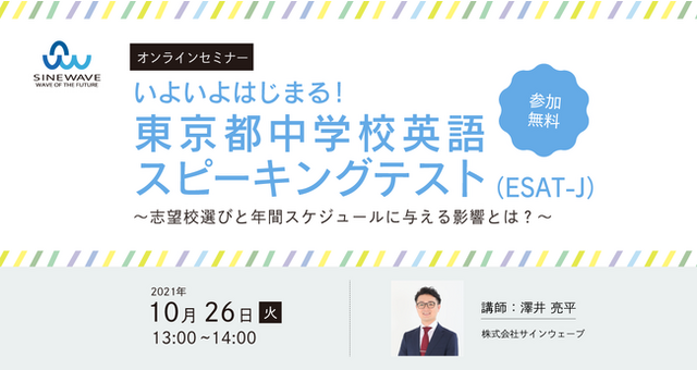 全国の学習塾と私学向けにAIテクノロジーを活用した中高生向け英語4技能対策アプリ「ELST(R)︎」や小学生向け「ELST(R)︎Elementary」、一般ユーザー向けのペン型スキャナー辞書「NazoritAI Pro(ナゾリタイプロ)」、「NazoritAI for School(ナゾリタイ フォースクール )」を提供する株式会社サインウェーブ(所在地:東京都千代田区、代表取締役:赤池雅光、以下サインウェーブ )は、学習塾の方々を主な対象とした無料オンラインセミナーを、10月26日(火)の13:00~14:00で開催いたします。