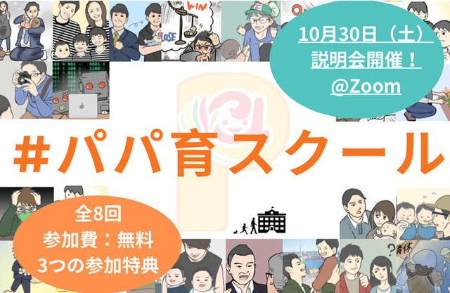 現在パパ達約160名(うち育休取得者50名)が集う育児コミュニティである「パパ育コミュ」では、現役パパからプレパパへ「育児をスタートする前に知っておきたかったことを伝える場所を作りたい」という想いから、「パパ育スクール」(全8回、参加費:無料)をスタートします。開講に先立ち10月30日(土)にオンライン説明会を開催します。